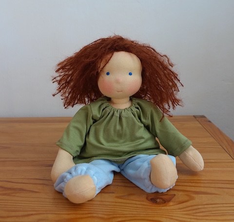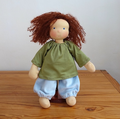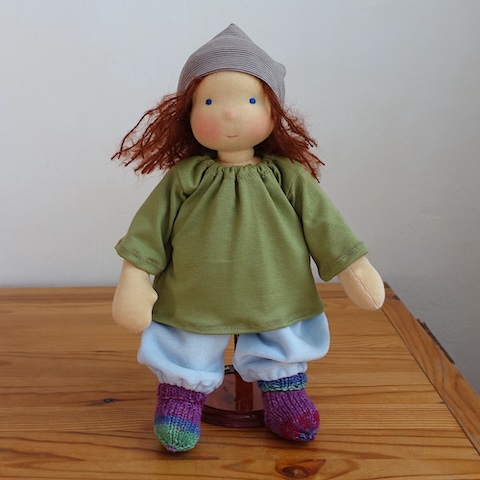 HABA-Puppe Ernie war schon einmal vor anderhalb Jahren bei mir in der Reparatur, damals ging es um ihre Arme. Dieses Mal waren es die Beine, die geflickt werden sollten.