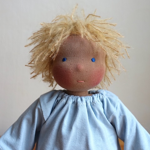 Nach der Nase sind die Haare meiner Erfahrung nach der zweithäufigste Grund für Puppenreparaturen. Je nach Spiel- und Kuschelintensität können sie mit der Zeit dünn werden, verfilzen und ausfallen. Das ist ganz normal bei textilen Materialien und kein Zeichen von mangelhafter Anfertigung oder unpfleglichem Umgang. Im Gegenteil: Meine 20-jährige Expertise hat mich gelehrt, dass man es Puppen eben ansieht, wenn sie bespielt und geliebt werden, und das ist vollkommen in Ordnung. Die gute Nachricht: Was von Hand erschaffen wurde, kann auch von Hand repariert werden.